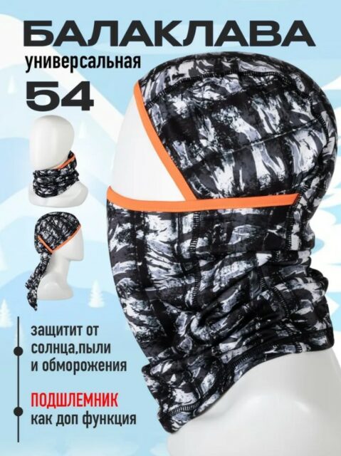 Балаклава (маска, подшлемник), 54см, серый с черным, DRC19BV003