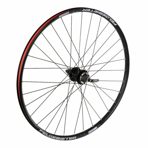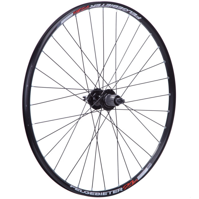 Заднее колесо 27,5 дюймов с двойным пистонированным ободом. Алюминиевая втулка на промышленных подшипниках под кассету 12 скоростей. Крепление на эксцентрик.