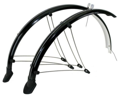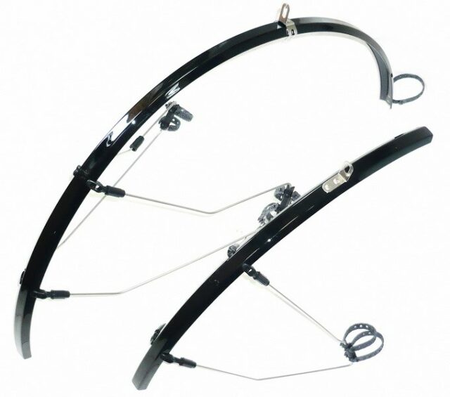 SunnyWheel SW-FE-113F/R – полноразмерные пластиковые крылья для шоссейных велосипедов. Крепление с помощью резинок на перья и ноги вилки велосипеда. Эти узкие плоские велокрылья подходят для резины шириной до 30 мм. Цвет: Черный.
