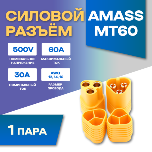 Силовой разъем Amass MT60-F + MT60-M (Мама-Папа) 60A 500В