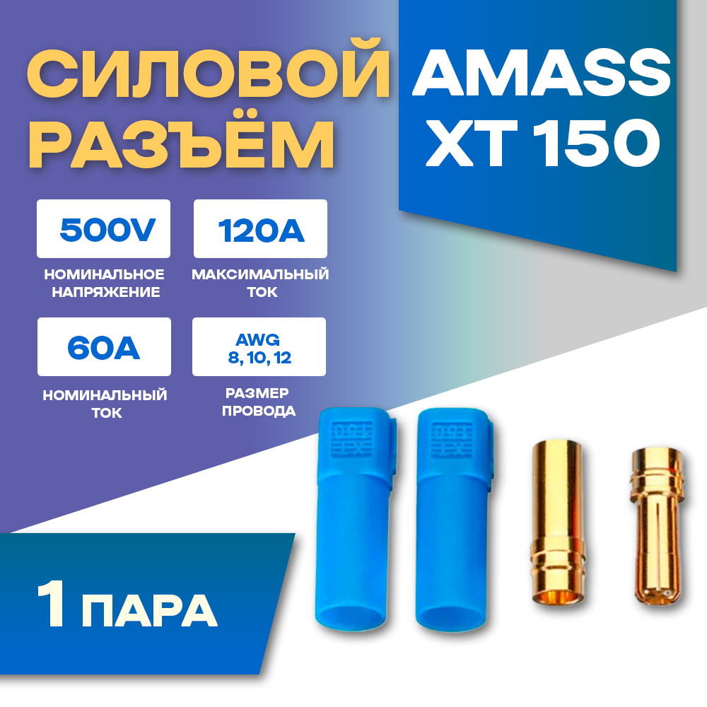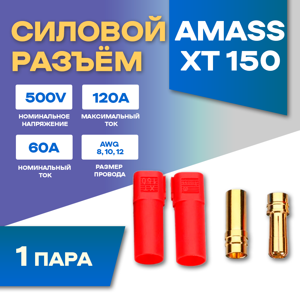 Силовой разъем Amass XT150-F + XT150-M (Мама-Папа) 120A 500В, красный