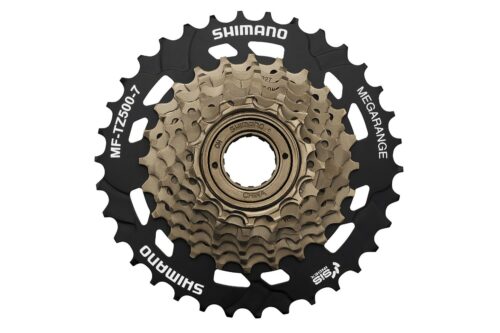 Трещотка – Shimano MF-TZ500 Tourney MegaRange для велосипедов с трансмиссией на 7 передач. Имеет крепление на любую заднюю втулку с резьбой, устанавливается и снимается специальным велосипедным съёмником. Является лидером в сегменте бюджетных трещоток, благодаря долгому ресурсу и качественному переключению.