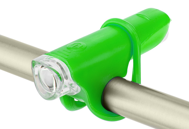 Фонарь JY-267-G передний на руль, 1 суперяркий светодиод, мягкий силиконовый корпус, под батарейку 1хАА, зеленый