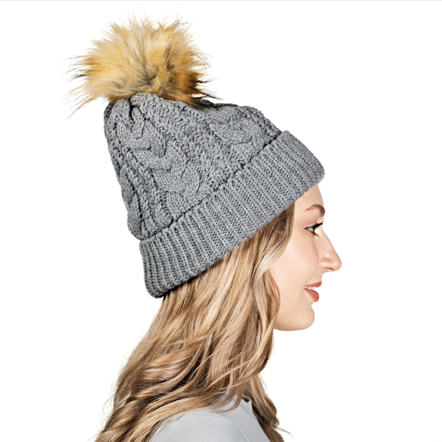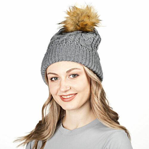Шапка взрослая (обхват 54 см), серый с бежевым, DRC22HK072